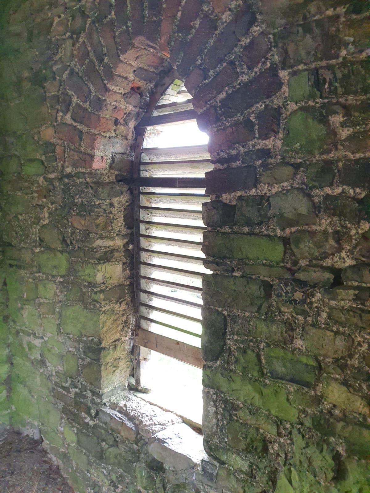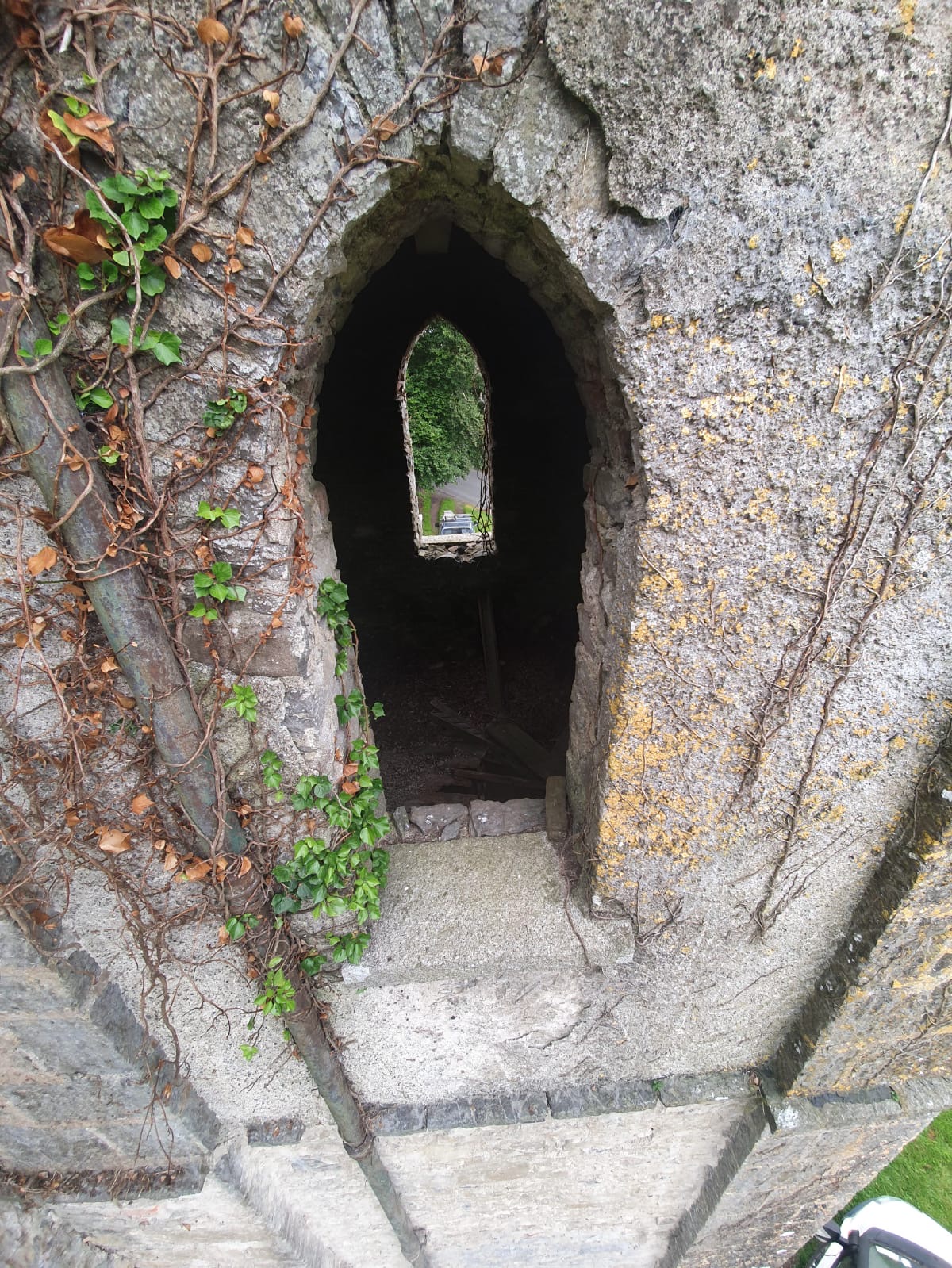 Some great work has gone on this week. Some of the Friends of Clonmethan were cleared for take-off – well, put into a boom lift – to clean off plaster and ivy from the upper reaches of the church. Some great views from on high.